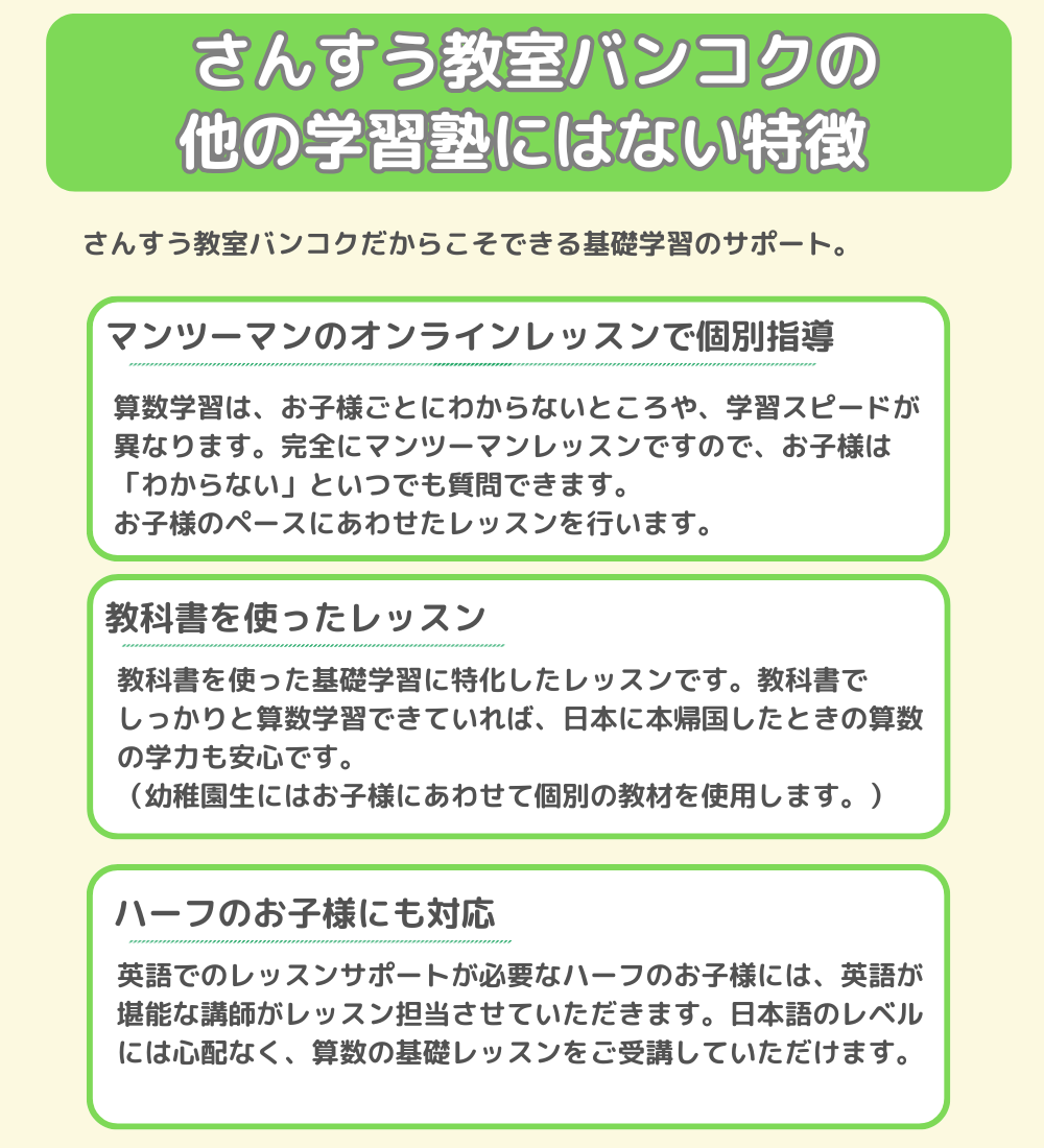 さんすう教室バンコクと比較して割高 |